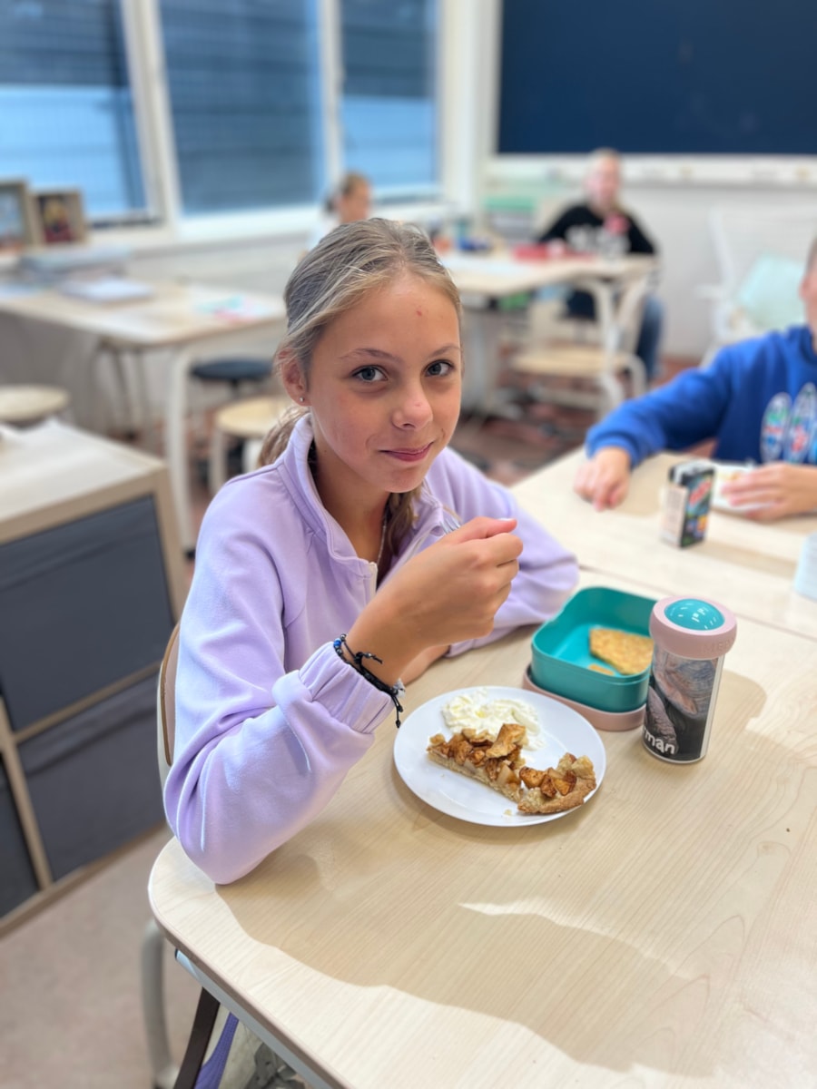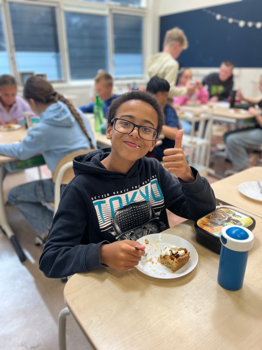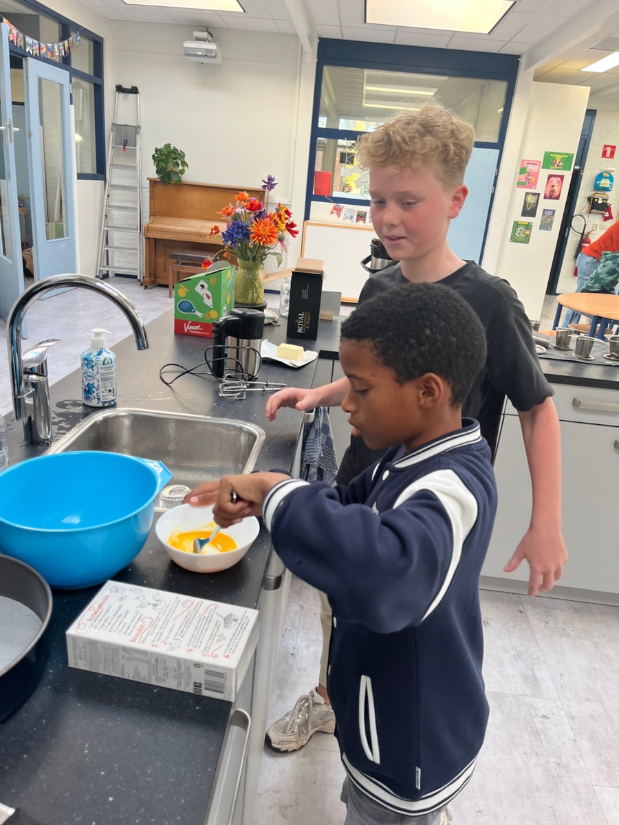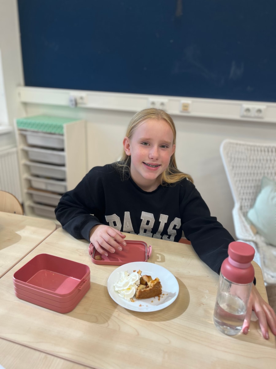 Vorige week mochten we in het Zuiderzeemuseum appels plukken. Vandaag hebben Tygo en Ray samen appeltaart gebakken voor de hele klas. We hebben er heerlijk van gesmuld met elkaar😍.