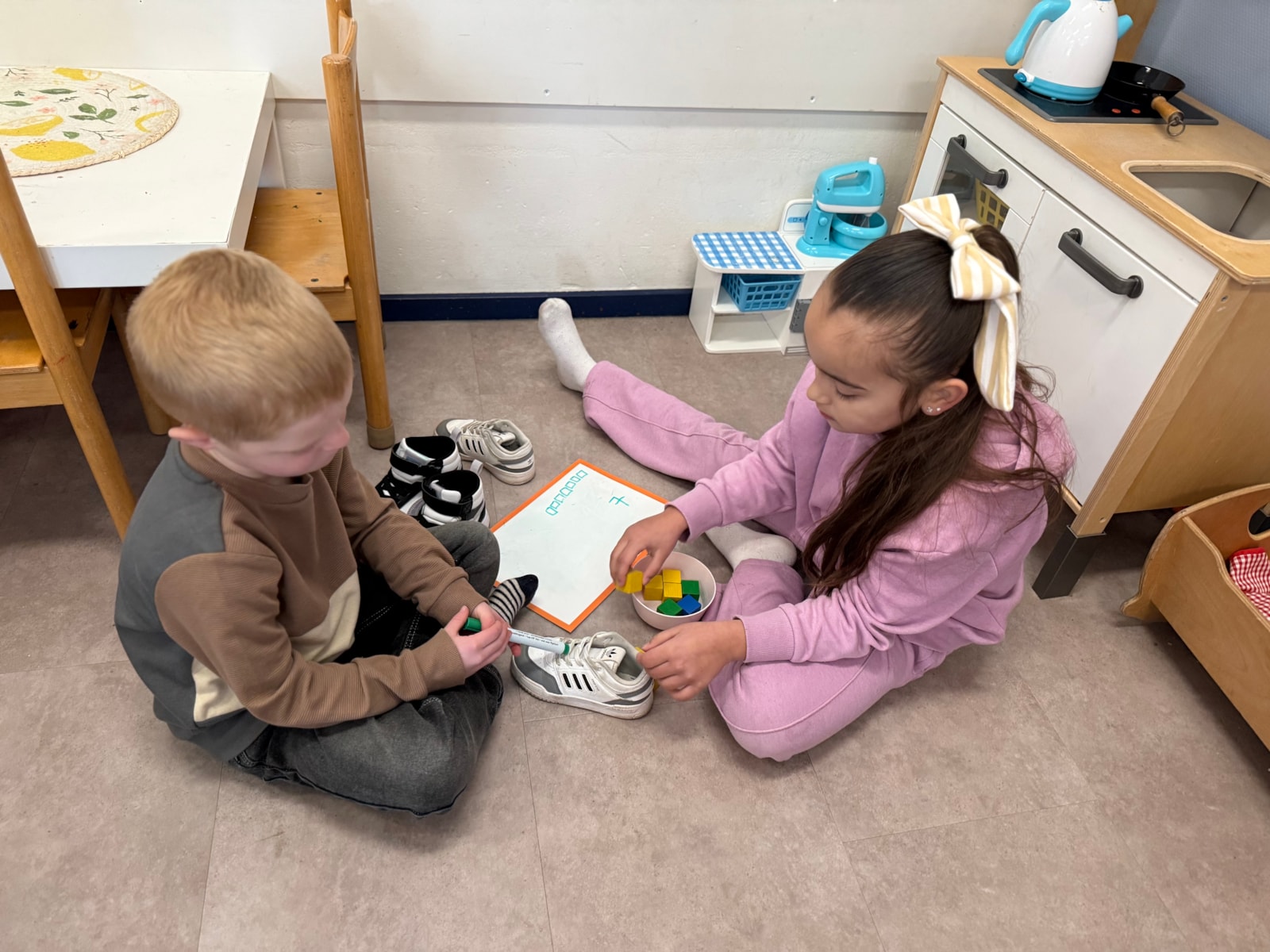 Vanmorgen zijn we gestart met een nieuwe inloop, waarbij de kinderen in kleurgroepjes aan het werk gingen. Daarnaast hebben we geoefend met meten aan de hand van blokjes. De kinderen hebben verschillende lengtes met elkaar vergeleken en hun bevindingen in tweetallen opgeschreven.
